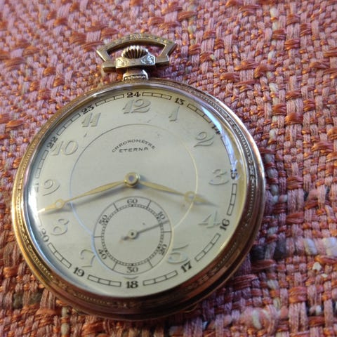 Naisten Eterna kultakello, nahkahihnalla. Ei naarmuja, pieni kevyt kaiverrus.