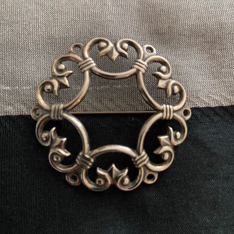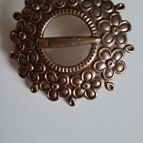 Kalevalakorun kaunis solki. Jäänyt käyttämättömäksi.