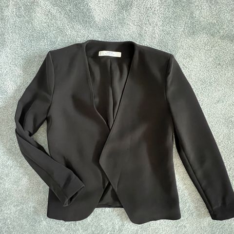 Kaunis lyhyt musta jakku, jossa pikku niitein somistetut hihat ja hartiat.