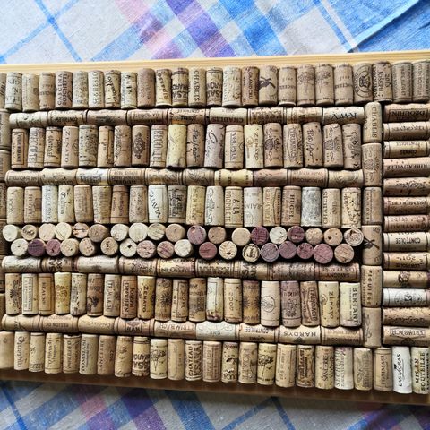 Uudenveroinen korkkitaulu kehyksissä, ripustettavissa seinälle takavaijerista.