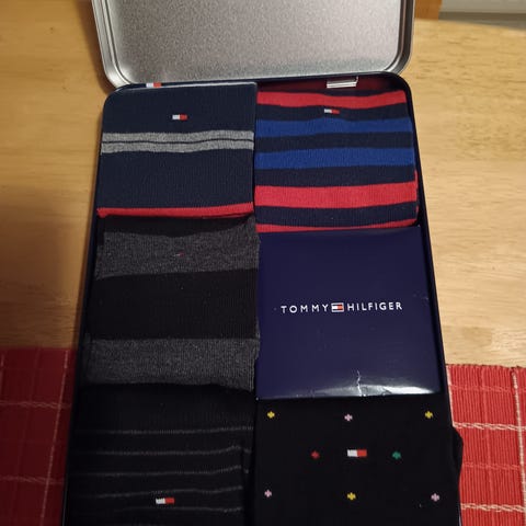Myydään kuvanmukaiset Tommy Hilfigerin uudet sukkapaketit, koot 35-38 ja 39-42. Toisessa tummansiniset ja vaalean raidalliset sukat, toisessa mustat ja mustat harmaalla kuvioinnilla. Myydään yhdessä. Nouto tai toimitus 8 euroa.