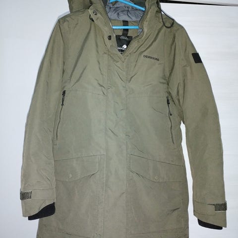 Didriksons Karen talvitakki koko 40, väri metsänvihreä ( vaikka näyttää kuvassa tumman harmaalta). Erittäin hyvässä kunnossa. Lämmin, veden ja tuulen pitävä. Nouto tai postitse. Ostaja maksaa postikulut.