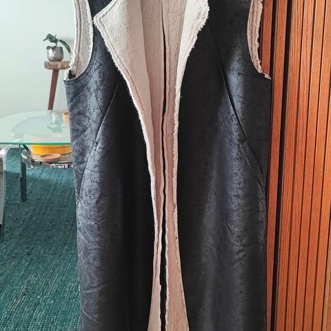 Myydään Marc Aurelin beige tekoturkisliivi. Takaosa neuletta. Kainaloissa värjäymät (oranssi).