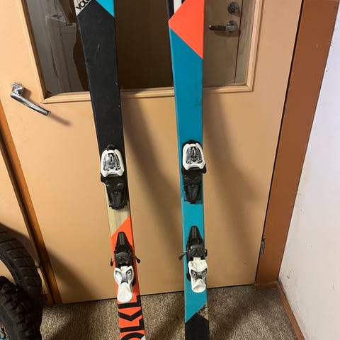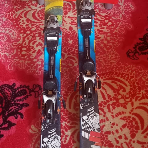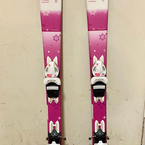 Elan pinball hero Twintip nuorten 135 cm laskettelusukset säädettävillä siteillä. Käytönjälkeä on pinnoilla.