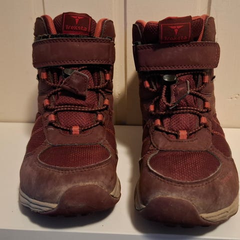 Uutena ostetut ja yhdellä käytetyt. Kulumaa pohjissa. Hiekkalikaa pinnassa. Tarrat pitää.