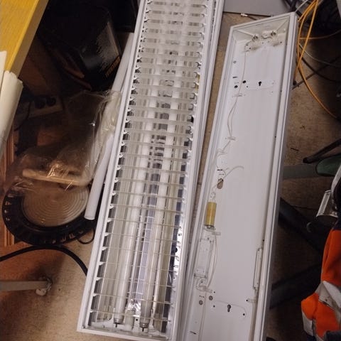 Varastosta löytyy myös philipsin lamppuja tähän valaisimeen. Näitä on ehkä 20-30 kappaletta. Näistä sovitaan hinta erikseen.