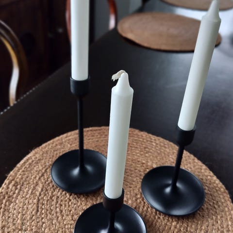 Myynnissä kuvien ehjät kynttilänjalat. Pituus on molemmilla 28 cm, kynttiläpesässä on metallisuoja. Lähetän ja kulut on 8 e, pakkaan hyvin. Yhteishinta on molemmista 18 e. Kulkeutuvat myös Turkuun