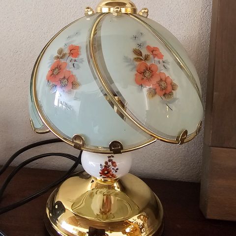 Fragata Oy Ulvila, Kaunis retro pöytälamppu, lasikupu, halkaisija 28cm, korkeus n27cm.