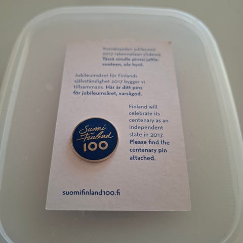 Kullattu Suomi 90-vuotta juhlapinssi. Lukossa tummentumaa, itse pinssi hienossa kunnossa.