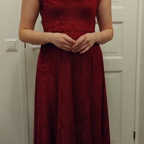 Upea UUSI juhlapuku. Itselleni hieman reilu, pituutta 160 ja kokoa n. L. Sanoisin että puku olisi kokoa n. Xl-XXL/ 46-48 vahva veikkaus