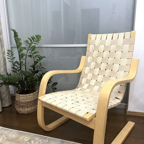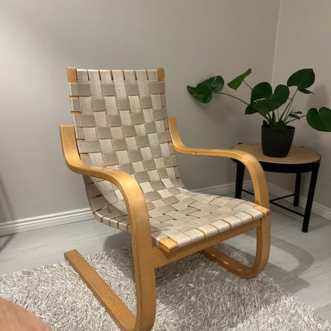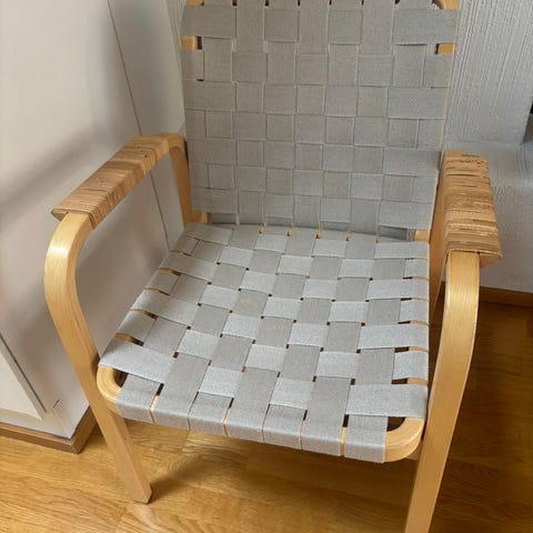 Artekin 596-nojatuoli on Ben af Schulténin suunnittelema. Tämä yksilö on verhoiltu vihreällä Alcantara-kankaalla ja jalat ovat koivua. Af Schultén aloitti uransa Artekilla vain 21-vuotiaana ja eteni vuosien saatossa yrityksen taiteelliseksi johtajaksi. Monet Artekin klassikkohuonekalut kuten 556- ja Big Ben -sohvat ovat hänen käsialaansa.