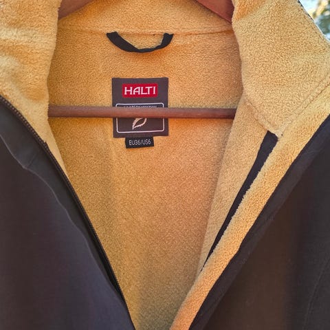 Myynnissä punainen Halti -merkkinen ulkoilutakki / urheilutakki, koko 34, kevyt, useita säilytystaskuja. Siisti ja ehjä.
