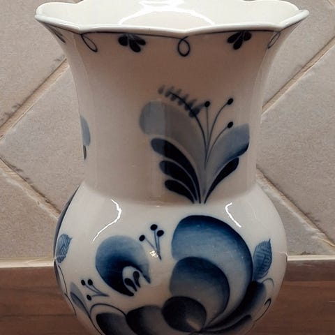 Kaunis vanha maljakko, jossa kukkakoristeiset joutsenemo ja kaksi poikasta. Korkeus 11,5 cm, pituus 14 cm ja leveys 11 cm. Ehjä ja siisti muuten, mutta vasemmanpuoleisen poikasen pyrstöstä on kultausta hieman kulunut. Ei valmistajan leimaa. Postitus tai nouto.
