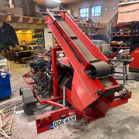 Klapikone jolla voi halkaista 1m ja lyhyempää klapia lisäpöydällä,traktorivetoinen.