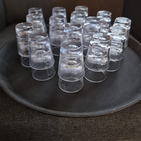 3 kpl sinisiä ja 3 kpl ruskeita snapsilaseja . Kaikki ehjiä. Yhteensä 10€