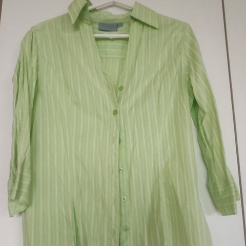 Fuksianvärinen(pystyraidat) pitkä paitapusero, pituus n. 80cm. Hihat saa kiinni napilla.
