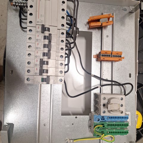 3-vaiheinen ryhmäkeskus johdonsuojakatkaisijoilla ja yhdellä 4-napaisella 30 mA vikavirtasuojakytkimellä, ovi vakiona. 40 A, 400 V, IP20C. Ryhmien kokonaismäärä 15, suorien lähtöjen määrä 9, vikavirtasuojattujen ryhmien määrä 6. Pääkytkimen nimellisvirta 25A. Kotelointiluokka IP2XC, kotelon/suojuksen materiaali teräs .