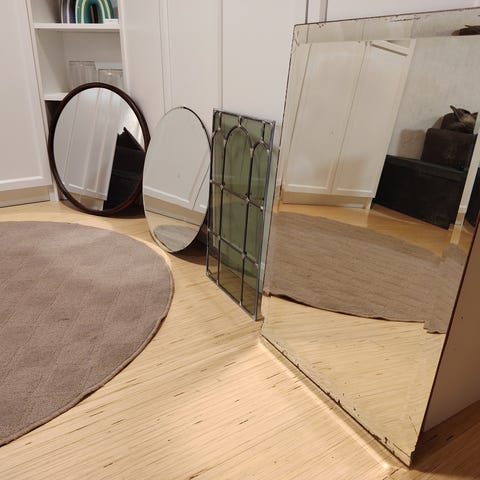 Todella kaunis. Sopii esim. koivukaapin päälle koristeeksi. Hyväkuntoinen muuten, mutta peili ajan saatossa mennyt huonoksi. Peilin voi uusia, tai pitää sellaisenaan.