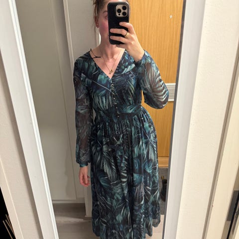 Mojito-merkkiken uusi ja käyttämätön kaunis sifonkinen musta mekko. Kokomerkintä 38, mutta menee 36 tai S ja varmaan M kokoa käyttäville. Kauniita yksityiskohtia kaula-aukon reuna ja hihat sekä leikkaus edessä. Ohut kangas eli käyttäjästä riippuen voi vaatia alle jotakin.