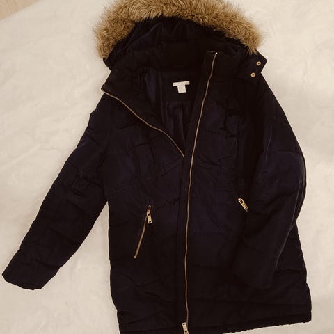 Hyvässä kunnossa oleva talvitakki odottavalle äidille.
