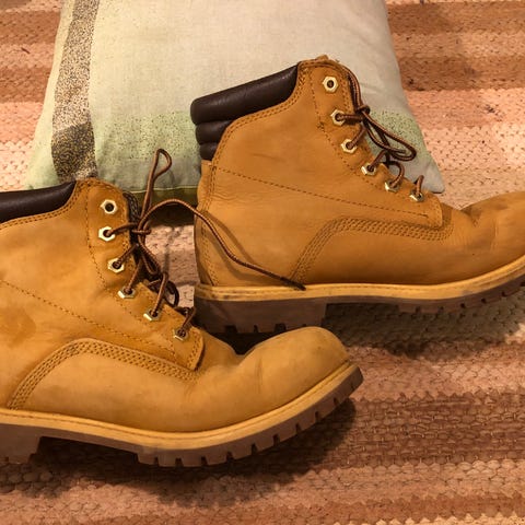 Mustat Timberland merkkiset nahkaiset korkeavartiset nauhalliset kengät koossa 39,5.
