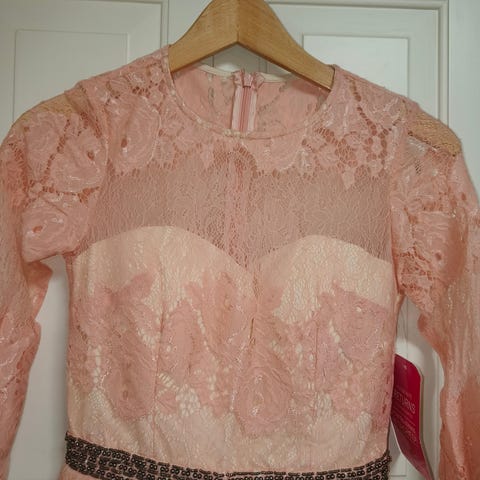 Kaunis ruskea mekko, helmikirjailtu etuosa. Kerran käytetty, joten hyvässä kunnossa. Helmassa ja olkaimissa paljon kääntö-/käyttövaraa. Koko 34. Voin myös lähettää, kulut ostajalle.