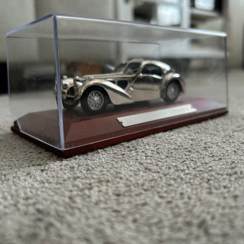 Kuvan keräily auto. Siisti, ehjä ja alkuperäisrasiassa. Auton pituus 10.5 cm, rasian pituus 15 cm.