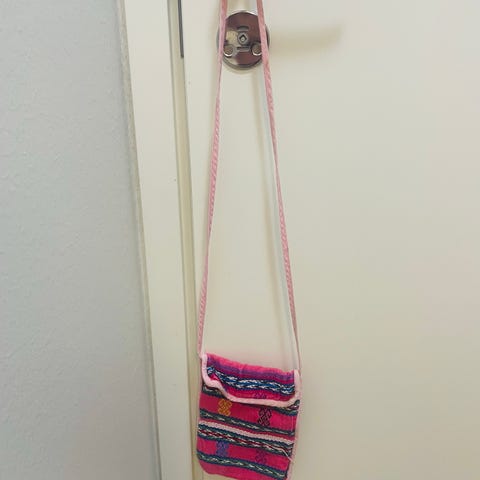 Pieni pussukka/laukku, johon mahtuu kännykän lisäksi muut pienet tarpeelliset tavarat.
