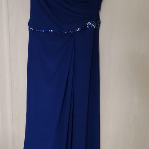 Juhlamekko on valmistettu ohuesta laadukkaasta tummansinisestä villasta. Käsin ommeltu. Koko on noin 42 tai jopa 44.