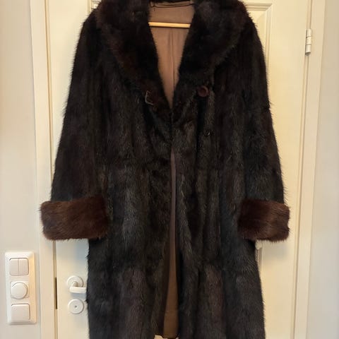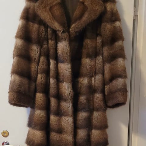 Upea klassisen tyylikäs hehkuvan mustanruskea piisamiturkki.