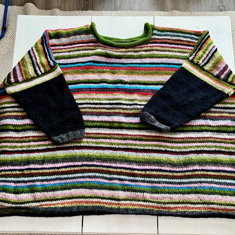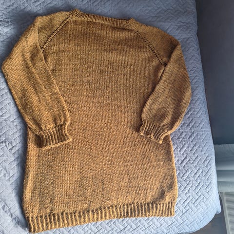 Itse neulottu Ravello -villapaita, koko M-L. Kainalo-kainalomitta 50 cm, olkapää-helma 60 cm, hihan pituus kainalon alta mitattuna 47 cm