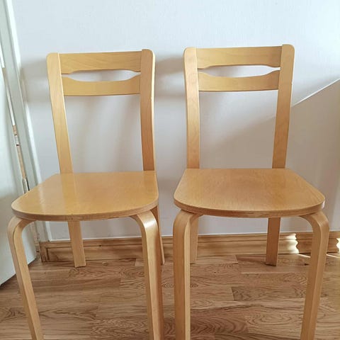 Koivuiset vanhat Artek tyyliset FMG (Fameg) Thonet puutuolit, käsinvalmistettu ja suunniteltu Puolassa. Pinnassa normaalia ajan tuomaa kulumaa.