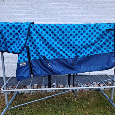 Uudet, vain sovittu. Väri neon pinkki, lähinnä totuutta kuvassa jossa näkyy loimessa oleva teksti. Todella kirkas väri, ornamentti kuviot heijastuvat valossa, mustat lukot, fleecevuori. Alamitta 115cm, koko selkämitta 109cm, todellinen selkämitta(koko) 75-80cm, helma 60cm. Sovitettu 75cm kokoa käyttävälle ja oli todella hyvä istuvuus kaikin puolin.