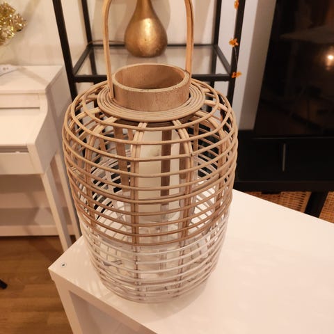 Hieman vajaa 30 cm korkea ja 20 cm leveä(alhaalta) sympaattinen panda. Johdon pituus 5 metriä.