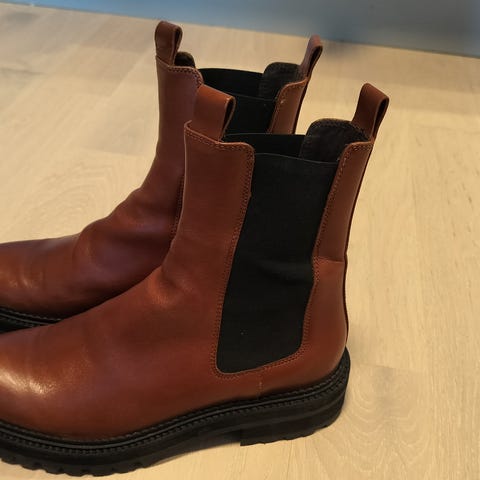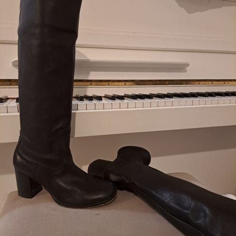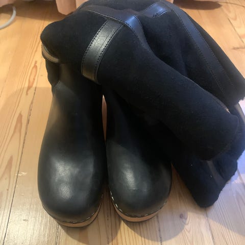 Tammikuussa 2025 ostetut Swedish hasbeens bootsit mustaa nahkaa. Koko pieni 39. Upeat! Muuten uudenveroiset, mutta olen öljynnyt nahkaa jotta pehmenisivät ja kävellyt ulkona pari kertaa. Nämä sopivat kapealle säärelle.