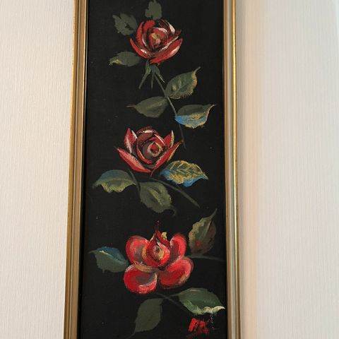 Myydään kaunis ruusu aiheinen taulu. Öljyväri maalaus kankaalle. Suomalaisen matrikkeli taiteilijan (MarlisS) tekemä maalaus. Taiteilija singneerannut taulun vuonna 2002.