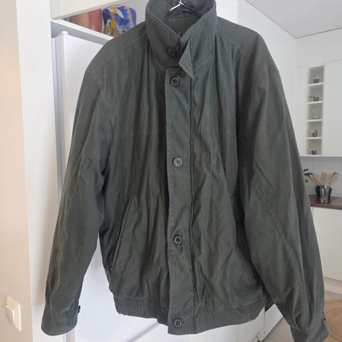 Miesten pitkä talvitakki (toppavuori). Sisällä lukee "Vico Rinaldi." Kokona lukee "C 52 R 42."