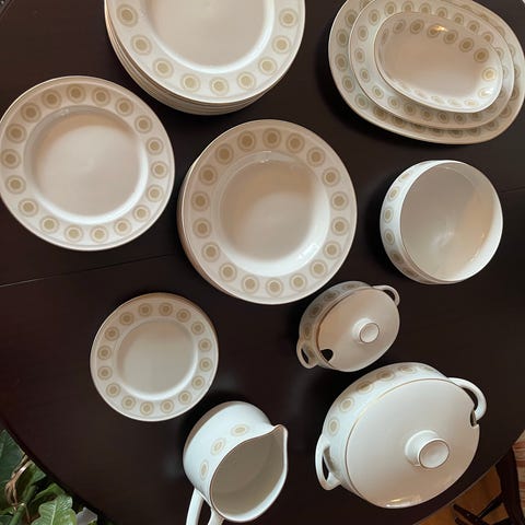 Myydään klassisen kauniita ja ajattoman tyylikkäitä Arabian Bellis astioita. Design, Richard Lindh. Koriste, Olga Osol. Vuosi, 1967-72.