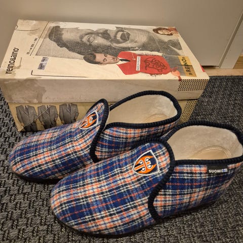 Myydään, legendaariset Tappara Reinot originaali värityksellä. Kunto ok käytetyiksi. Myydään kuvien mukaisessa kunnossa. Pesemällä saanet kankaiden värit kirkkaiksi. Näillä kelpaa kulkea. Sisä- ja/tai ulkokäyttöön. Koko EUR noin 42/43. Käteisellä tai mobilepayllä nouto Ylöjärvi. Myös toridiilinä.