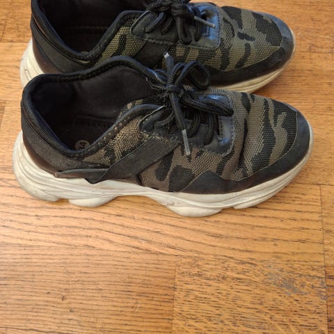 Parempina kenkinä käytetty eli kunto erinomainen. Mustat, koko 34, takana metallinen tähtikoriste, kenkää kiertää metallitikkaus, sivussa kolme tähteä. Vetoketjut sivuissa, ei vuorta.