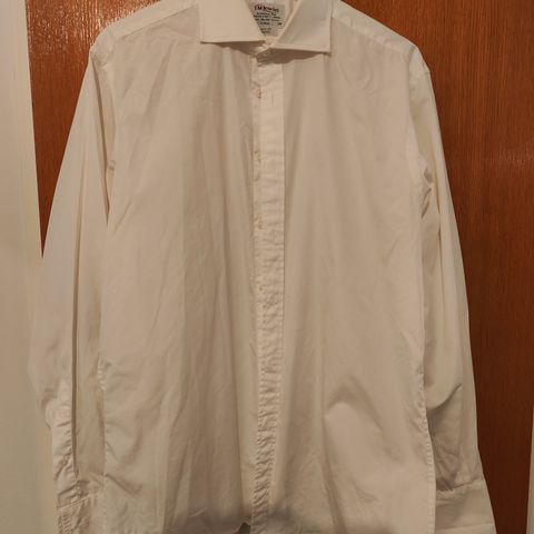 Pukupaita paksua ylellistä puuvillaa. Koko (kaulus/hiha): 17”/36” (43 cm/91 cm) eli hiha on normaalia hieman pidempi. Tuplakalvosimet. Istuvuus: Slim Fit, ei tarvitse silittää (non-iron), voi laittaa kuivaajaan. Irrotettavat kaulusluut pitävät kaulukset ryhdissä. Avaamaton alkuperäisessä pakkauksessaan.