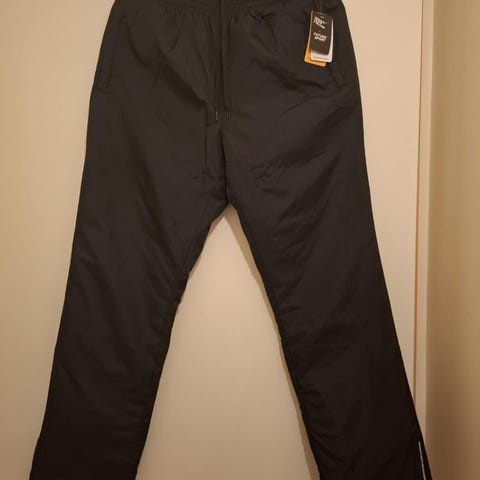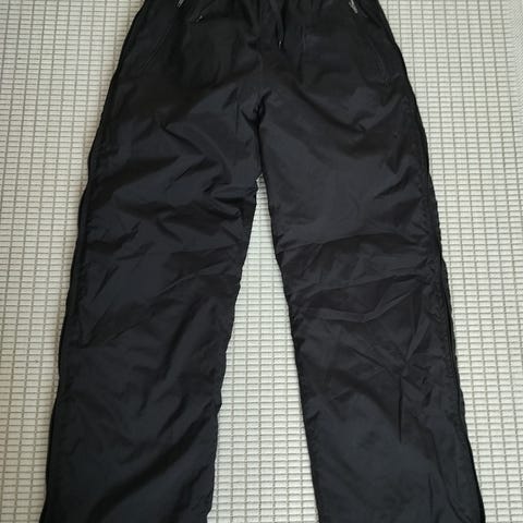 Mustat On the Peak -merkin toppa-/ulkoiluhousut. Vyötäröllä kuminauha ja kiristysmahdollisuus. Lahkeiden ulkoreunoilla vetoketjut ja lahkeensuussa kiristysmahdollisuus. Molemmilla puolilla vetoketjutaskut. Kokomerkintä 44/46, mutta siihen nähden minusta melko pientä kokoa.