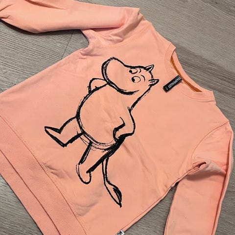 Yhdellä lapsella paita paljoudessa todella vähälle käytölle jäänyt muumi paita. Puuvillaa. Paksumpaa kuin t-paita kankaat.