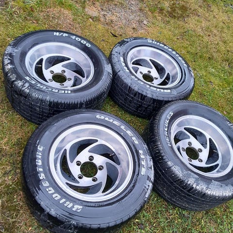 Tässä myydään siis pelkkiä vanteita, kuvissa näkyvät kumit ja auto on jo myyty.