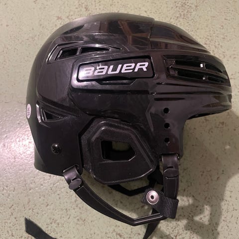 Meillä oli vain perusluistelussa käytössä, ei törmäyksiä, kypärä on täysin ehja ja hyväkuntoinen. M-koko 54-59 cm.