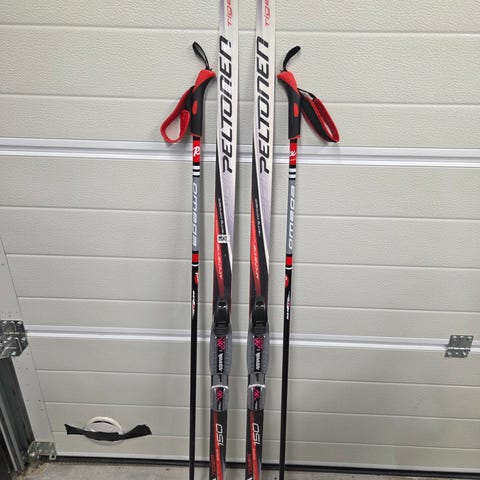 Kuluneet Peltonen Accent -kombisukset. Menee vielä vaikka koulun hiihtotunneilla.