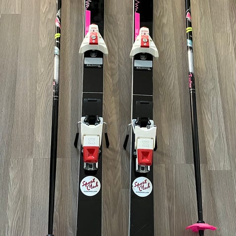 Yhtä vähän käytetyt Salomon SX31 laskettelumonot. Monojen kokomerkintää en muista, mutta suksijan tavallisen kengän numero on 42.