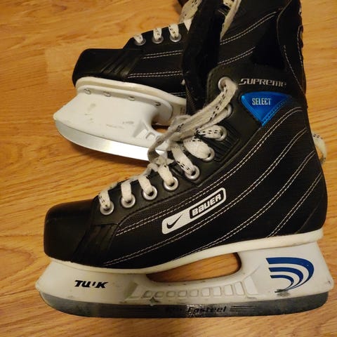 Bauerin erittäin siistit hokkarit, yhdellä lapsella koulussa ja ulkojäillä luisteltu.