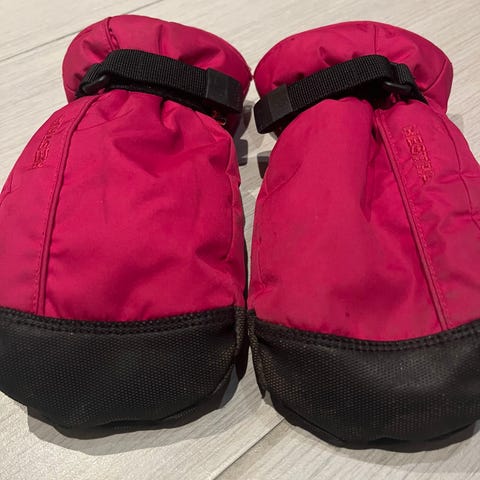 Siisti yleisilme, mutta jo reilusti käytönjälkeä ja sormenpäitä harsittukin, eivät siis ehjät kauttaaltaan. Edelleen kuitenkin lämpimät hanskat pakkaskeliin! Sopivat 3-4-vuotiaalle.