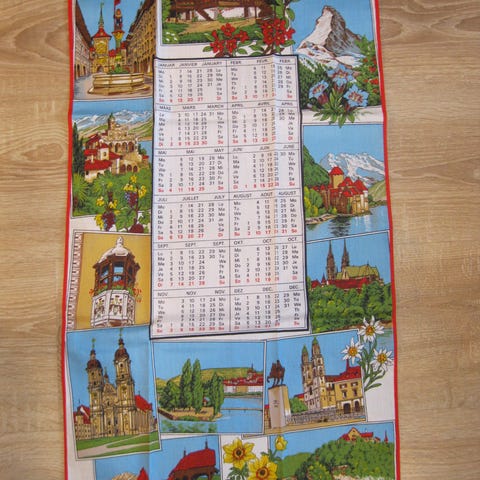 Vuoden 1981 käyttämätön love is... for ever and ever, irlantilainen kalenteripyyhe, 50 % pellava, 50 % puuvilla